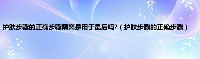 大家好,精选小编来为大家解答以上问题。护肤步骤的正确步骤隔离是用于最后吗?,护肤步骤的正确步骤很多人还不知道,现在让我们一起来看看吧!