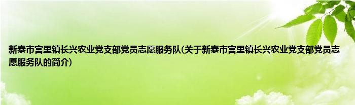 1、 新泰市宫里镇长兴农业党支部党员志愿服务队是由新泰市党员志愿服务总队领导下的志愿团体。