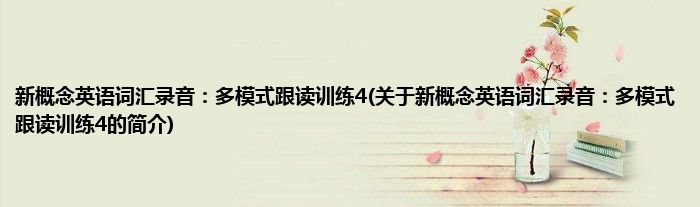 新概念英语词汇录音:多模式跟读训练4(关于新概念英语词汇录音:多模式跟读训练4的简介)