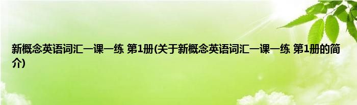 本文关于新概念英语词汇一课一练 第1册的简介就讲解完毕,希望对大家有所帮助。