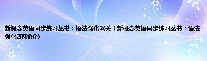本文关于新概念英语同步练习丛书:语法强化2的简介就讲解完毕,希望对大家有所帮助。