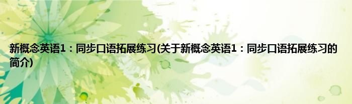 大家好,新概念英语1:同步口语拓展练习,关于新概念英语1:同步口语拓展练习的简介很多人还不知道,现在让我们一起来看看吧!