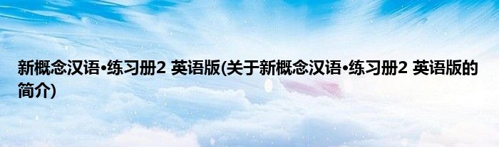 本文关于新概念汉语·练习册2 英语版的简介就讲解完毕,希望对大家有所帮助。