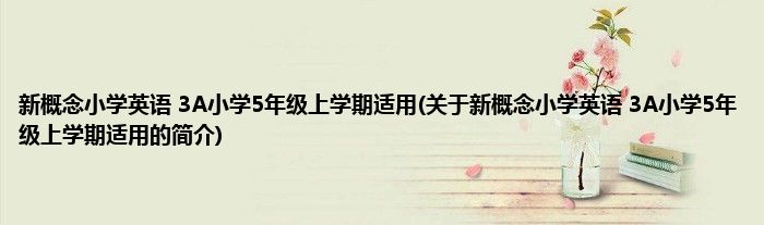 本文关于新概念小学英语 3A小学5年级上学期适用的简介就讲解完毕,希望对大家有所帮助。