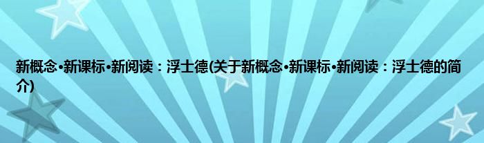 本文关于新概念·新课标·新阅读:浮士德的简介就讲解完毕,希望对大家有所帮助。