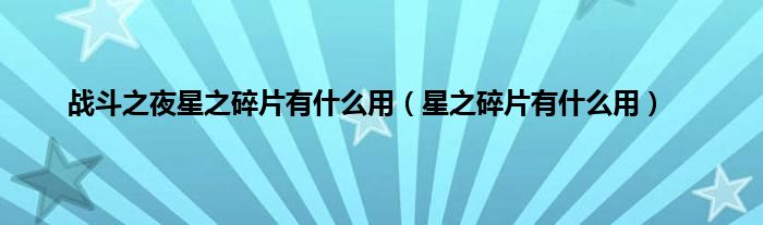 战斗之夜星之碎片有什么用(星之碎片有什么用)