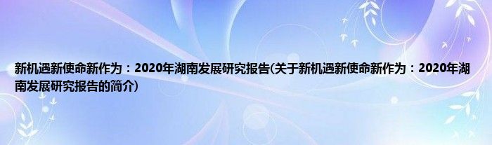 本文关于新机遇新使命新作为:2020年湖南发展研究报告的简介就讲解完毕,希望对大家有所帮助。