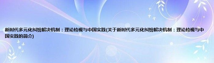 本文关于新时代多元化纠纷解决机制:理论检视与中国实践的简介就讲解完毕,希望对大家有所帮助。