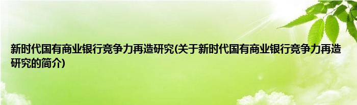 本文关于新时代国有商业银行竞争力再造研究的简介就讲解完毕,希望对大家有所帮助。