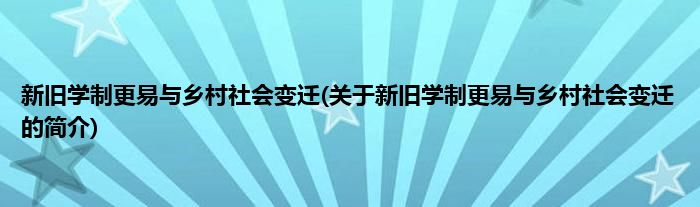 本文关于新旧学制更易与乡村社会变迁的简介就讲解完毕,希望对大家有所帮助。