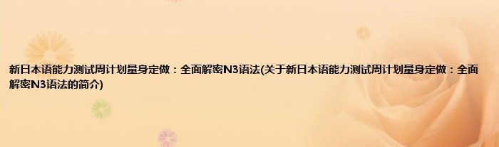 本文关于新日本语能力测试周计划量身定做:全面解密N3语法的简介就讲解完毕,希望对大家有所帮助。