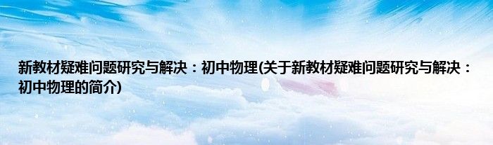 本文关于新教材疑难问题研究与解决:初中物理的简介就讲解完毕,希望对大家有所帮助。