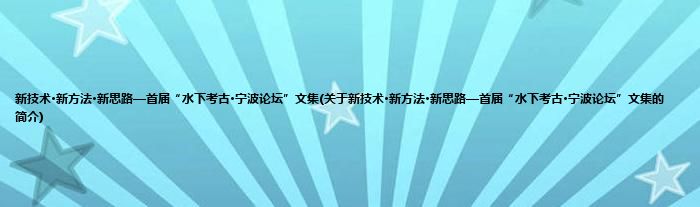 新技术·新方法·新思路—首届“水下考古·宁波论坛”文集(关于新技术·新方法·新思路—首届“水下考古·宁波论坛”文集的简介)