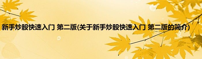 本文关于新手炒股快速入门 第二版的简介就讲解完毕,希望对大家有所帮助。