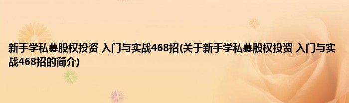 本文关于新手学私募股权投资 入门与实战468招的简介就讲解完毕,希望对大家有所帮助。
