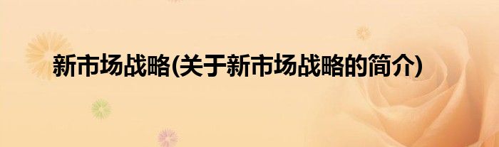 大家好,新市场战略,关于新市场战略的简介很多人还不知道,现在让我们一起来看看吧!