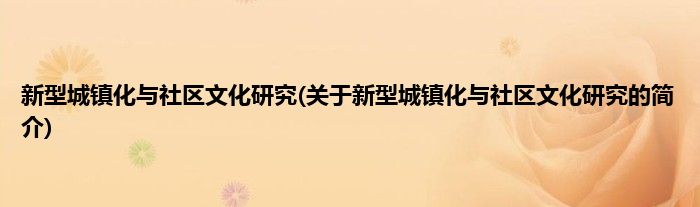 本文关于新型城镇化与社区文化研究的简介就讲解完毕,希望对大家有所帮助。