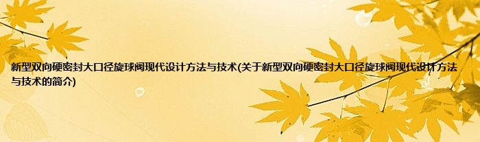 本文关于新型双向硬密封大口径旋球阀现代设计方法与技术的简介就讲解完毕,希望对大家有所帮助。