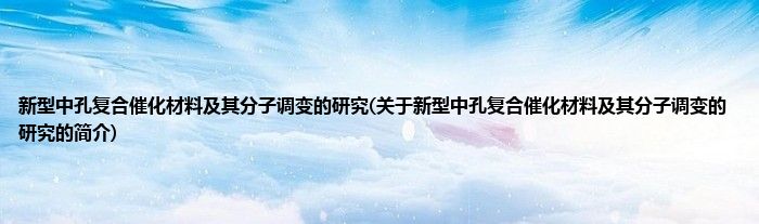本文关于新型中孔复合催化材料及其分子调变的研究的简介就讲解完毕,希望对大家有所帮助。