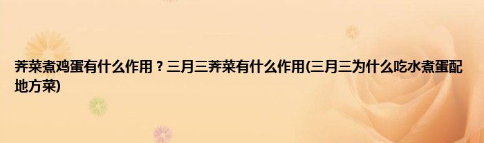 大家好,小科来为大家解答以上问题。荠菜煮鸡蛋有什么作用?三月三荠菜有什么作用(三月三为什么吃水煮蛋配地方菜)很多人还不知道,现在让我们一起来看看吧!