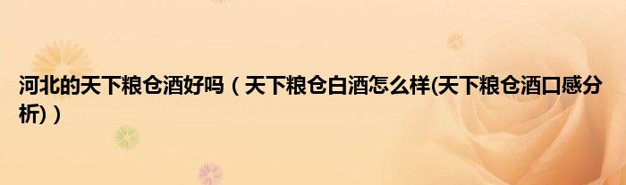 大家好,小科来为大家解答以上问题。河北的天下粮仓酒好吗,天下粮仓白酒怎么样(天下粮仓酒口感分析)很多人还不知道,现在让我们一起来看看吧!
