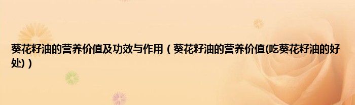 大家好,小科来为大家解答以上问题。葵花籽油的营养价值及功效与作用,葵花籽油的营养价值(吃葵花籽油的好处)很多人还不知道,现在让我们一起来看看吧!
