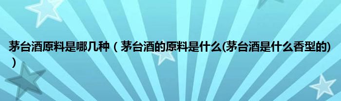 大家好,小科来为大家解答以上问题。茅台酒原料是哪几种,茅台酒的原料是什么(茅台酒是什么香型的)很多人还不知道,现在让我们一起来看看吧!