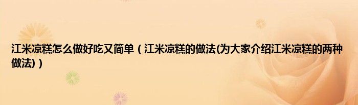 大家好,小科来为大家解答以上问题。江米凉糕怎么做好吃又简单,江米凉糕的做法(为大家介绍江米凉糕的两种做法)很多人还不知道,现在让我们一起来看看吧!