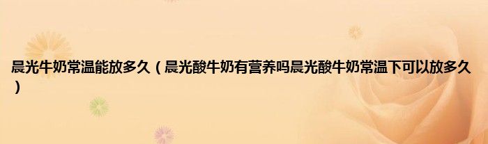 以上“晨光酸牛奶有营养吗,晨光酸牛奶常温下可以放多久"为大家介绍到这里,希望对你有所帮助。