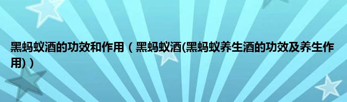 黑蚂蚁保健酒是21世纪中国传统白酒的绝佳替代品。该酒可用于治疗风湿、类风湿性关节炎、高脂血症、肺结核、恶性肿瘤、乙型肝炎、脱发、糖尿病、性功能障碍、黑蚂蚁,具有抗老年痴呆症、抗衰老、延年益寿的功效。它是一种很好的保健药酒,有利于增强体质。