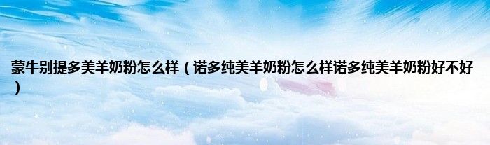 大家好,小科来为大家解答以上问题。蒙牛别提多美羊奶粉怎么样,诺多纯美羊奶粉怎么样诺多纯美羊奶粉好不好很多人还不知道,现在让我们一起来看看吧!