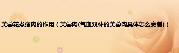 大家好,小科来为大家解答以上问题。芙蓉花煮瘦肉的作用,芙蓉肉(气血双补的芙蓉肉具体怎么烹制)很多人还不知道,现在让我们一起来看看吧!