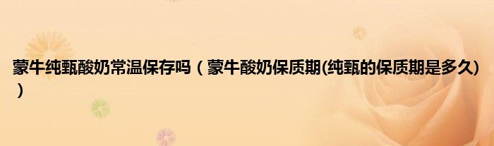 大家好,小科来为大家解答以上问题。蒙牛纯甄酸奶常温保存吗,蒙牛酸奶保质期(纯甄的保质期是多久)很多人还不知道,现在让我们一起来看看吧!