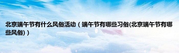 大家好,小科来为大家解答以上问题。北京端午节有什么风俗活动,端午节有哪些习俗(北京端午节有哪些风俗)很多人还不知道,现在让我们一起来看看吧!