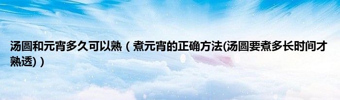 大家好,小科来为大家解答以上问题。汤圆和元宵多久可以熟,煮元宵的正确方法(汤圆要煮多长时间才熟透)很多人还不知道,现在让我们一起来看看吧!