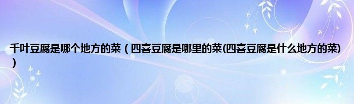 大家好,小科来为大家解答以上问题。千叶豆腐是哪个地方的菜,四喜豆腐是哪里的菜(四喜豆腐是什么地方的菜)很多人还不知道,现在让我们一起来看看吧!