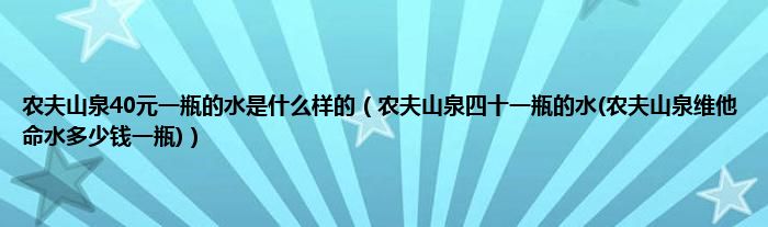 大家好,小科来为大家解答以上问题。农夫山泉40元一瓶的水是什么样的,农夫山泉四十一瓶的水(农夫山泉维他命水多少钱一瓶)很多人还不知道,现在让我们一起来看看吧!
