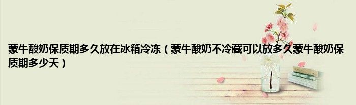 大家好,小科来为大家解答以上问题。蒙牛酸奶保质期多久放在冰箱冷冻,蒙牛酸奶不冷藏可以放多久蒙牛酸奶保质期多少天很多人还不知道,现在让我们一起来看看吧!