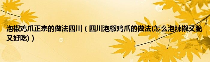 大家好,小科来为大家解答以上问题。泡椒鸡爪正宗的做法四川,四川泡椒鸡爪的做法(怎么泡辣椒又脆又好吃)很多人还不知道,现在让我们一起来看看吧!