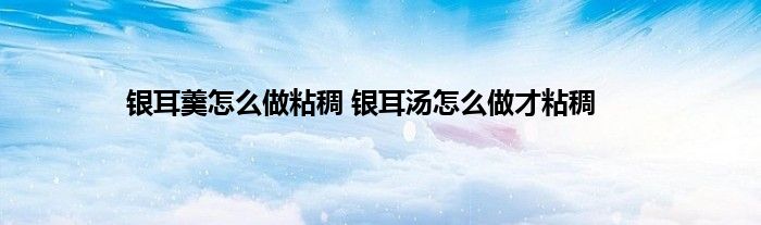 银耳汤怎么做才粘稠