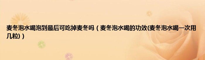 大家好,小科来为大家解答以上问题。麦冬泡水喝泡到最后可吃掉麦冬吗,麦冬泡水喝的功效(麦冬泡水喝一次用几粒)很多人还不知道,现在让我们一起来看看吧!