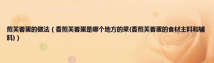 大家好,小科来为大家解答以上问题。煎芙蓉蛋的做法,香煎芙蓉蛋是哪个地方的菜(香煎芙蓉蛋的食材主料和辅料)很多人还不知道,现在让我们一起来看看吧!