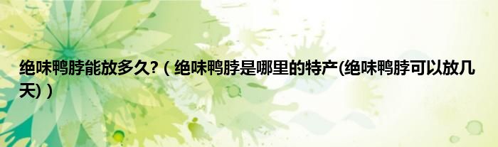 大家好,小科来为大家解答以上问题。绝味鸭脖能放多久?,绝味鸭脖是哪里的特产(绝味鸭脖可以放几天)很多人还不知道,现在让我们一起来看看吧!