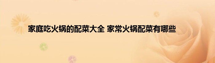 有哪些家常菜火锅配菜?以上是家庭吃火锅的全套配菜。另外,吃火锅食物时,火锅的底火一定要旺,才能保持锅里的汤汁沸腾。如果蔬菜食物吃得不熟,病菌和寄生虫卵没有被完全杀死,容易引发疾病。