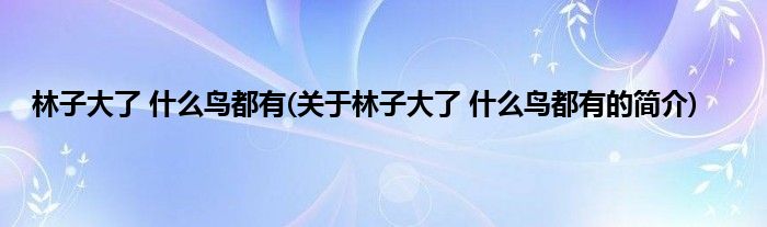 本文关于林子大了,什么鸟都有的简介就讲解完毕,希望对大家有所帮助。