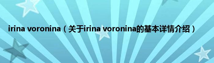 本文关于irina voronina的基本详情介绍就讲解完毕,希望对大家有所帮助。