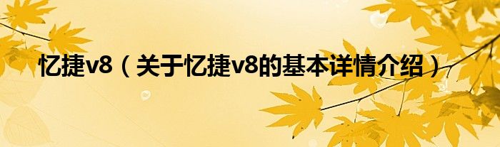 本文关于忆捷v8的基本详情介绍就讲解完毕,希望对大家有所帮助。