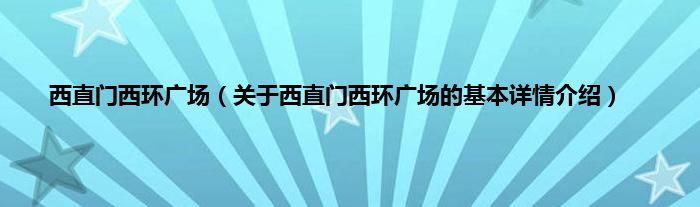 本文关于西直门西环广场的基本详情介绍就讲解完毕,希望对大家有所帮助。