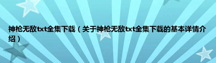 本文关于神枪无敌txt全集下载的基本详情介绍就讲解完毕,希望对大家有所帮助。