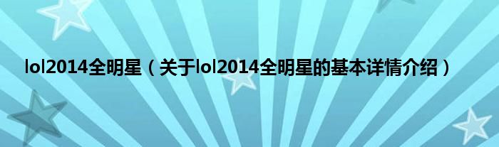 本文关于lol2014全明星的基本详情介绍就讲解完毕,希望对大家有所帮助。